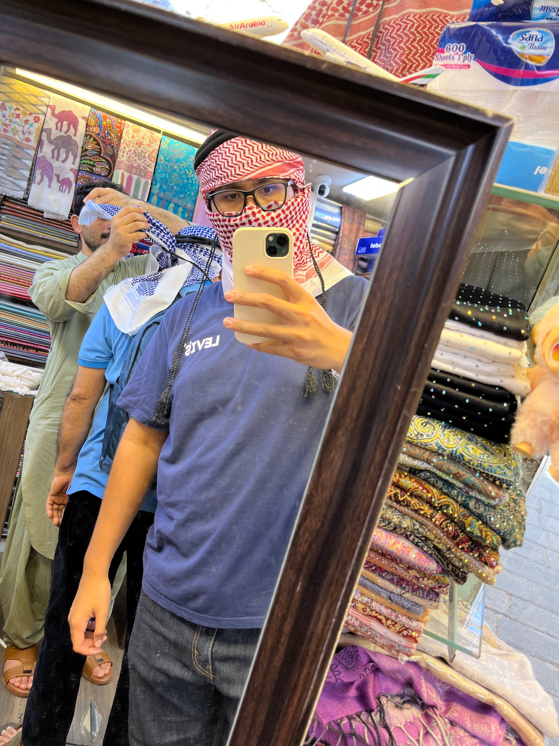 Yang ni yang aku cakap yang lain brand. Then kitorang pergi ke Kedai Pakaian dia sebab nak beli serban untuk pergi ke Gurun Pasir. The reason is sebab kitorang nak tutup muka dari habuk. Aku beli serban merah putih and siap dia punya ring warna hitam. Bila dah beli tu aku mintak mak aku record orang Afghanistan pakaikan aku serban so that aku boleh rujuk balik video tu.