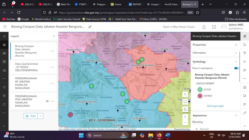 Sebelum aku buat Permit Monitoring Form for Building Control Departments’ staffs in Geographical Information System ( ArcGIS ) and ArcGIS Dashboard , Aku kena attend kursus dengan satu vendor which is GeoInfo Sdn Bhd yang perkenalkan sistem ni and ajar macam mana nak guna. Apa-apa yang aku tak faham aku tanya je akak tu.