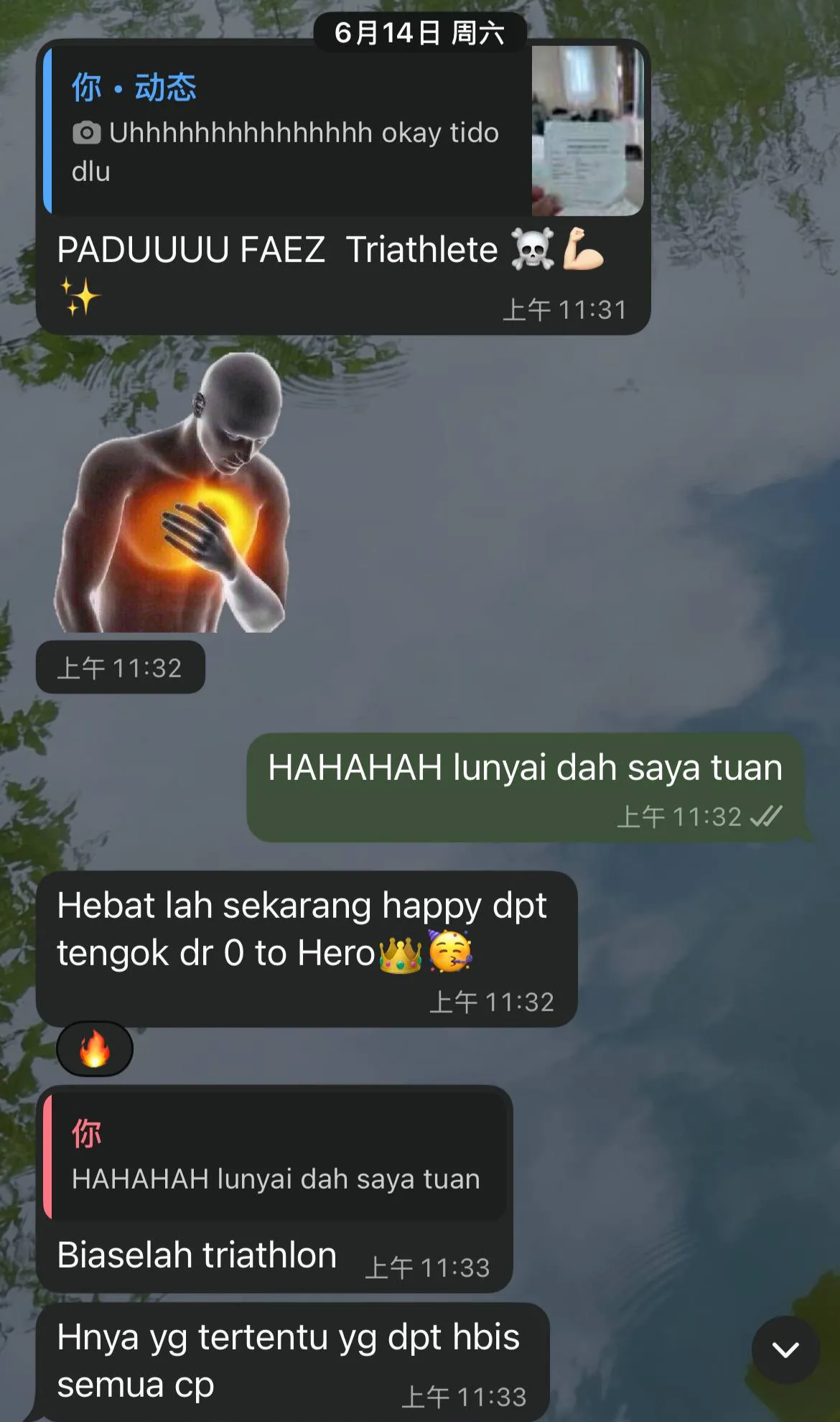 Ni message dia lepas aku dapat result placing dalam Perak Lumut Triathlon. Kalau korang nak tengok aku bagi link page . Dia tau dulu aku ni gemok gila sampaila sekarang aku jadi triathlete so dia rasa bangga dengan apa yang aku capai.