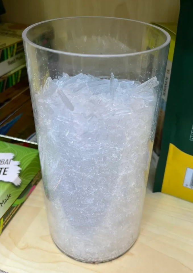 First kitorang pergi dia punya Kedai Makanan. Kitorang beli Dubai Chocolate Bar, Saffron & Mint. Mint tu dalam bentuk crystal and dia boleh elokkan sakit kepala dengan selsema and also joint pain. Cara dia amik sikit crystal mint tu and campur dengan air panas. Lepastu try bau and inshaallah okay sebab crystal tu dari pergunungan.
