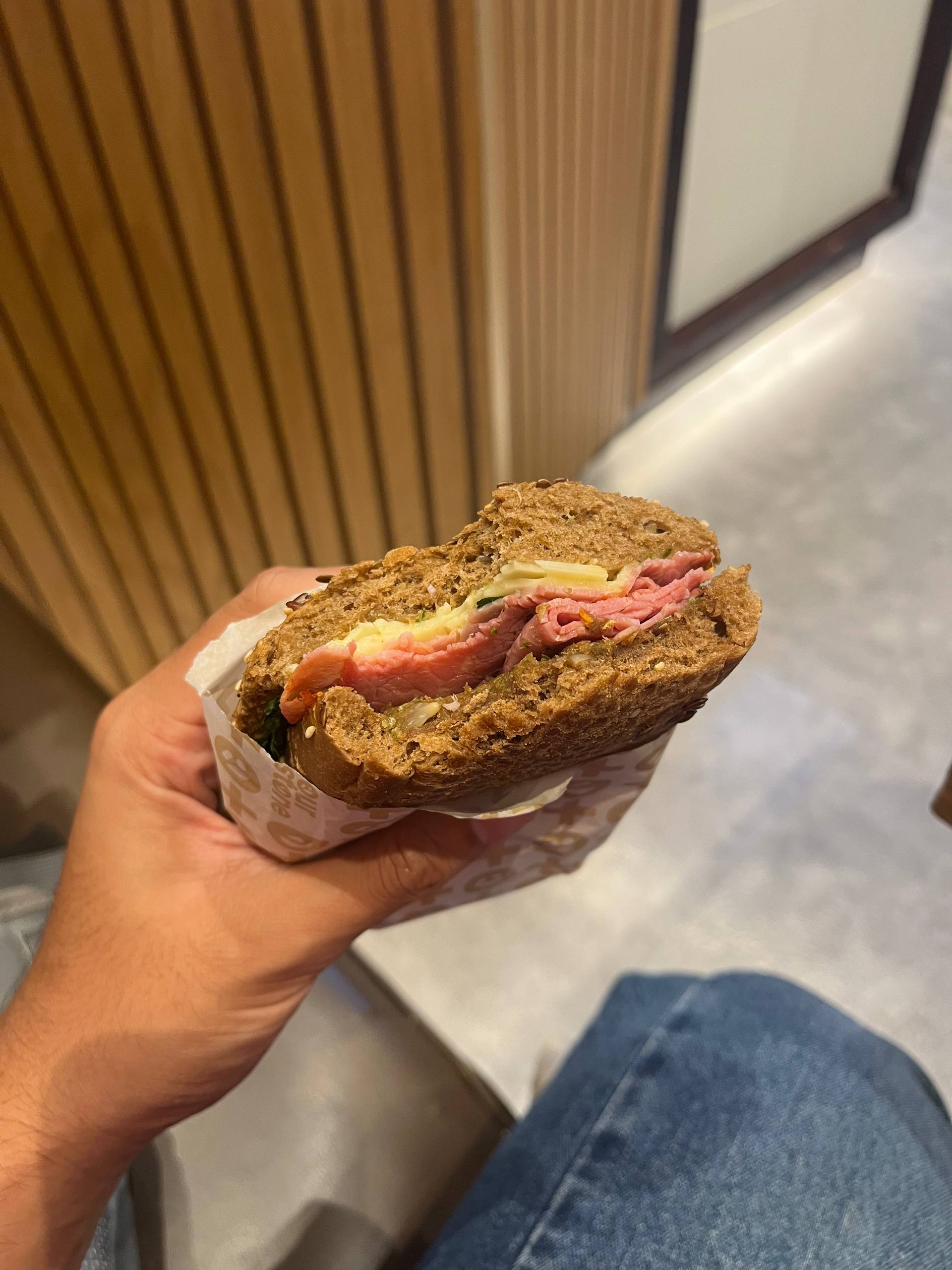 Ni adalah dalam Airport Dubai sementara tunggu kapal terbang dekat gate. Ni chicken pastrami and aku ada beli Hot Latte.